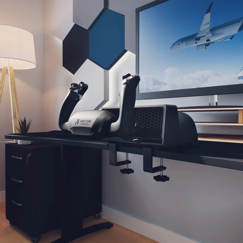 A compact console-style controller that puts full flight control — pitch, roll, yaw, throttle, flaps, trim, and landing gear — right in your hands.